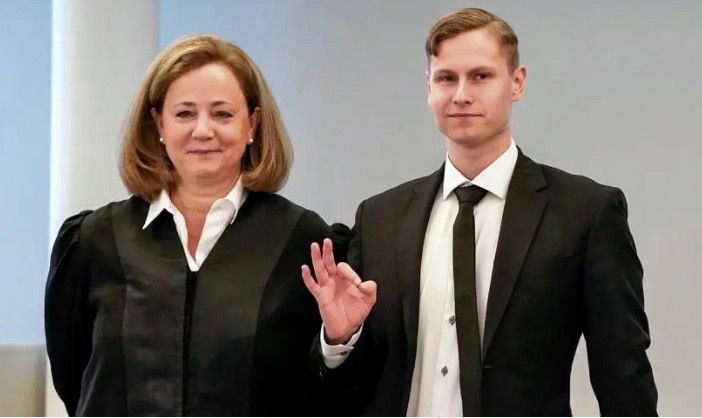 Wearing a dark suit, 22-year-old Philip Manshaus appeared before the court outside Oslo, making the "OK" sign with his hand, used by some to signify white supremacy, as he entered.