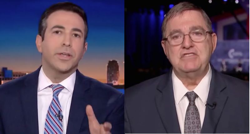 MSNBC host Ari Melber (left) interviewing Rep. Michael Burgess (R-TX, right). Image via screengrab.