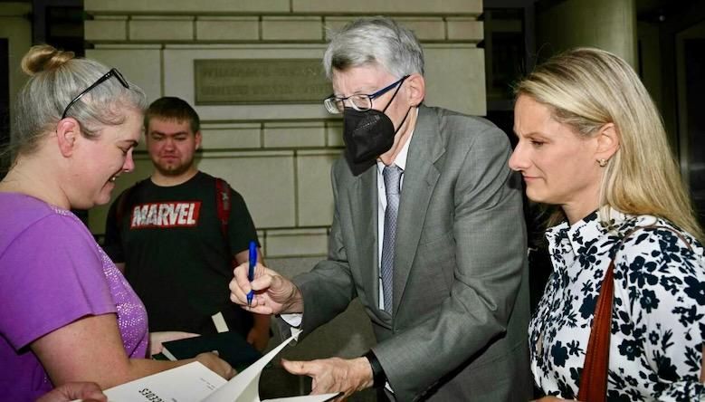 Author Stephen King signs autographs outside a US court in Washington MANDEL NGAN AFP