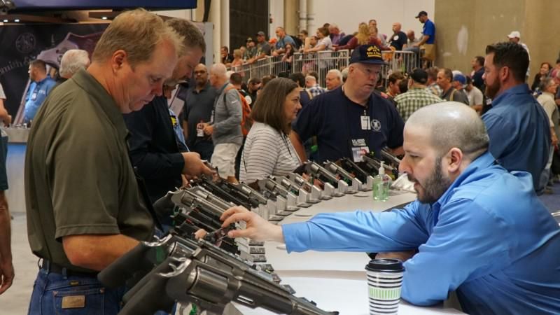 Some of the vendors reflected the gun organization’s roots representing the interests of hunters and sport shooters. Others showcased historic firearms with little modern application. A significant number of vendors and classes promoted guns for self-defense, reflecting the modern NRA’s hardline stance opposing almost any regulation of gun ownership. One seminar offered tips on how to draw a pistol as quickly as possible; a video advertising a vendor’s short-barreled semiautomatic rifle depicted a man using the weapon against a home invader.