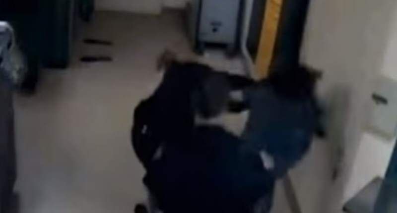 The footage captures Jennifer Merrow being thrown into a wall by Monroe County Deputy Raelle Ashley after she was booked for driving while intoxicated in December 2014. Merrow is seen struggling to put a jacket on when Ashley initiates the attack, while another deputy tries to restrain her. After more deputies enter the room, Merrow is placed in restraints and taken out of the room with her head covered.
