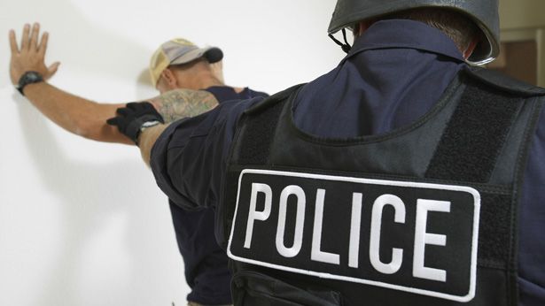 [Rear view of officer arresting on Shutterstock]