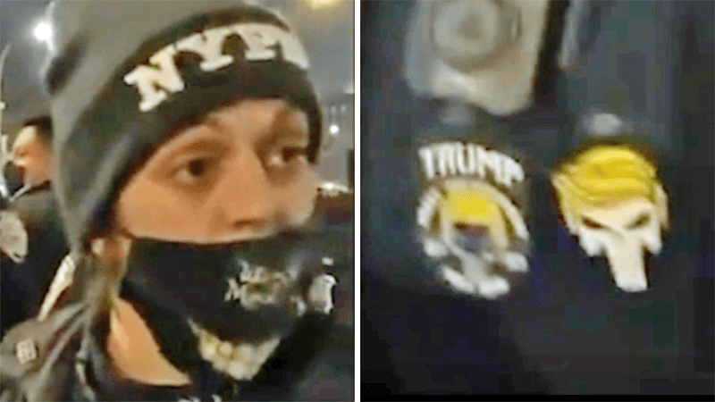 The New York Police Department said initial disciplinary action has been taken against an officer wearing pro-Trump patches while working at a protest.