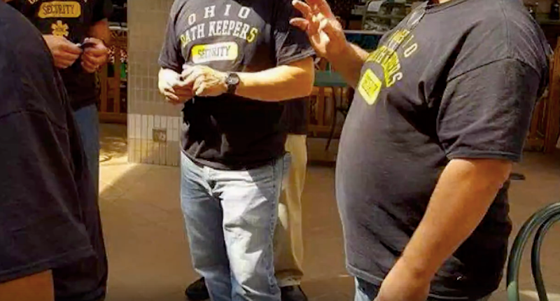Law enforcement officials' affidavit notes that Caldwell was reportedly responsible for organizing a group of 8 to 10 individuals, including some who have been identified as "styled Ohio militia members" who "wore helmets and military-style gear and were seen moving purposefully toward the top of the Capitol steps and leading the move against police lines." The Ohio members of the group were reportedly arrested on Sunday, Jan. 17.