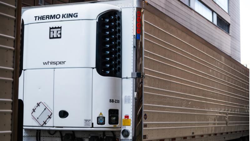 A refrigerated truck outside Bellevue Hospital in New York, NY. (Shutterstock)