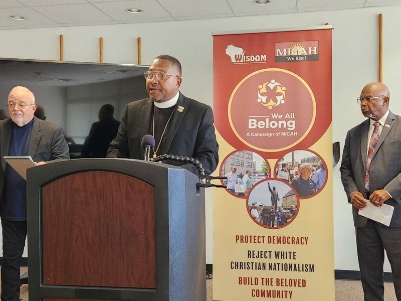 Another rally speaker, Janan Najeeb, president of the Milwaukee Muslim Women’s Coalition and the religious caucus chair for MICAH, contrasted the society that white Christian nationalists envision with the Beloved Community — an ideal named by Rev. Dr. Martin Luther King Jr. that the MICAH campaign also embraces.