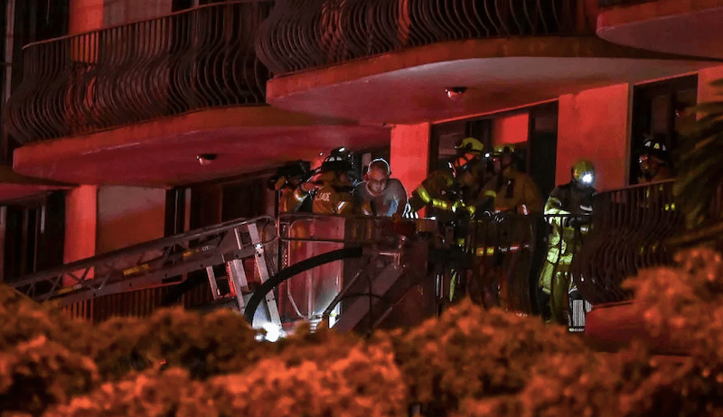 First responders rescue a resident from a partially collapsed residential building in Miami Beach, Florida, early June 24, 2021 CHANDAN KHANNA AFP