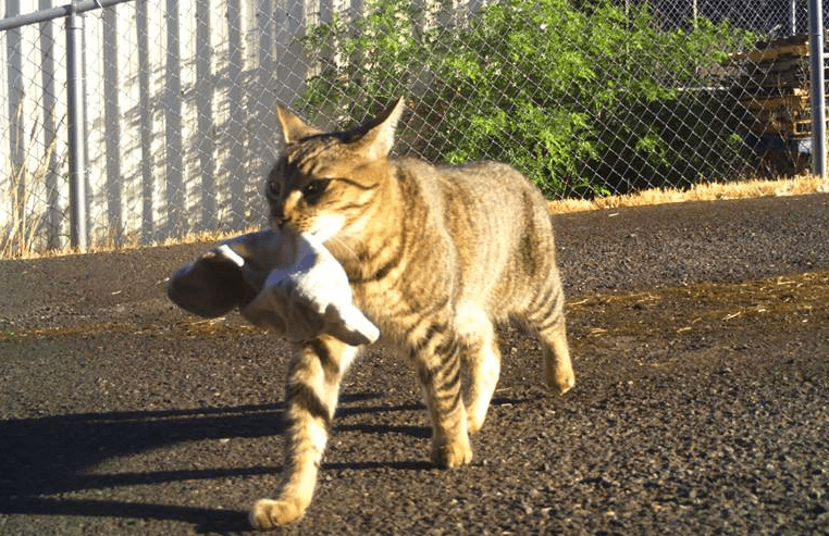 Kempas sorts out the toys and clothes and other useful items and donates them to Goodwill. The rest he throws away or recycles. The police officer said he doesn't know why Tigger seems to prefer these types of "kills" over things like mice and birds.