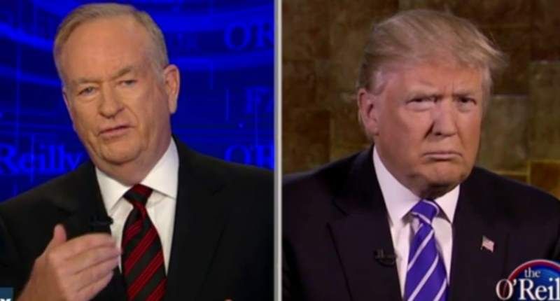 Bill O'Reilly interviews Donald Trump on April 11, 2016. (Media Matters)