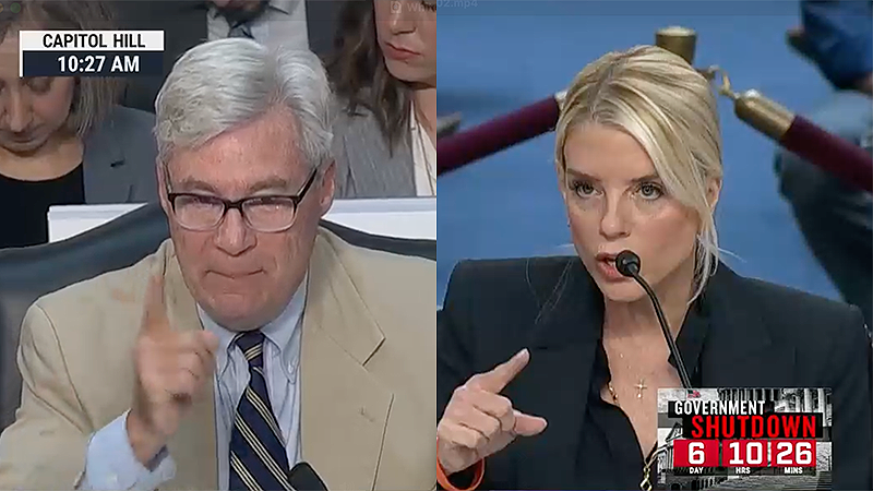 Sen. Sheldon Whitehouse and Attorney General Pam Bondi (Photos: CSPAN Screen captures)