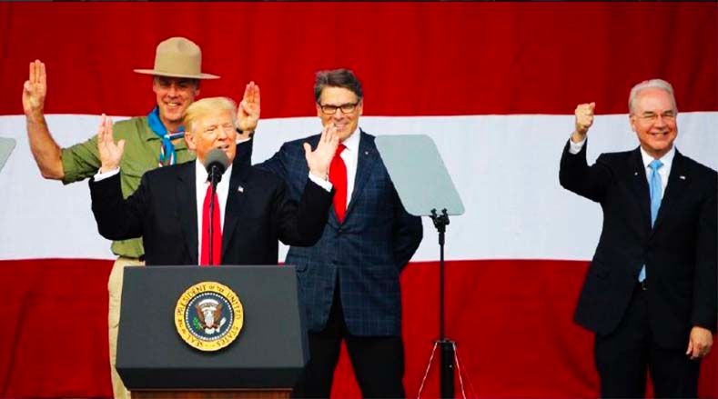 The tweet called out Trump's latest endeavor to create his own fake newscast, his effort to politicize the Boy Scouts, the apparent endorsement of police brutality and his call for "Congress to change the rules to give him more power."