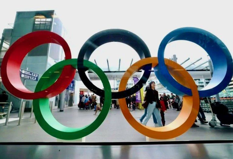 Olympic rings on display at Paris' Orly airport - but fewer visitors to the Games are renting privately-owned apartments than expected (Emmanuel DUNAND/AFP)