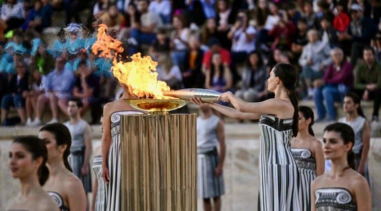 The Olympic flame was handed to Paris organisers last Friday during a ceremony in Greece © Aris MESSINIS / AFP