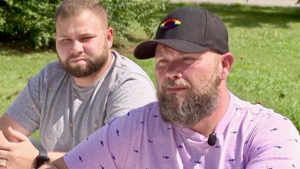 Jessie Goodman (photo, right) says his father is dying and only has a days left to live. He told ABC affiliate News 9 that Pastor Jay Scruggs of Lee's Chapel Baptist Church will not bury his father if Jessie or his fiancé "take part in any way," including just attending the ceremony.