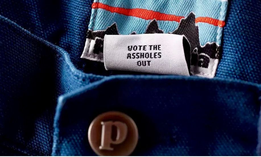 Outdoor retailer Patagonia, known for championing environmental causes, has put it bluntly to voters in a label on a limited-edition pair of shorts that says "VOTE THE ASSHOLES OUT."