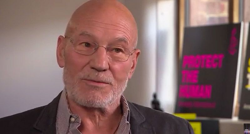 British actor Patrick Stewart, a vocal advocate for gay rights, surprised viewers in an interview Wednesday night, coming to the defense of the two Northen Ireland bakers who were fined after refusing to make a cake with a pro-same sex marriage inscription on it.