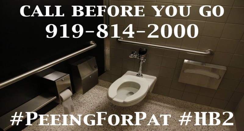 #PeeingForPat, as it's being called, encourages participants to contact the governor to "confirm your adherence to or disregard of" HB2, which bans trans residents from using public restrooms according to their gender identity, and also rolled back anti-discrimination statutes instituted in Charlotte.