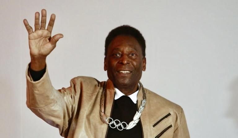 Pele waves after being decorated with an Olympic Order Medal in Sao Paulo, Brazil in 2016 © Miguel Schincariol / AFP/File