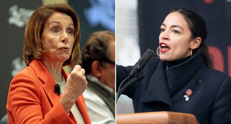 Reps. Nancy Pelosi (D-CA, left, via Gage Skidmore) and Alexandria Ocasio-Cortez (D-NY, right, via Lev Radin).
