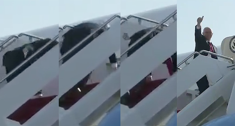 Vice President Mike Pence took a tumble heading up a set of steps to his plane Tuesday. In any normal administration, it wouldn't be a big deal. However, in 2016, President Donald Trump's campaign and Fox News propelled a conspiracy theory about Hillary Clinton's "failing" health after she tripped over something during the campaign.