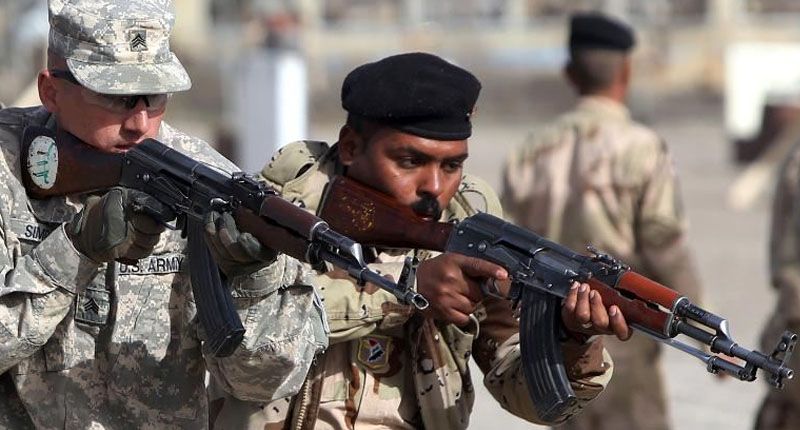 An American military trainer instructs an Iraqi soldier at the Taji base complex on January 7, 2015 (AFP)