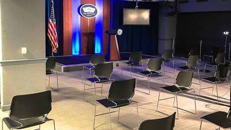 Pentagon enacts 'social distancing' rules for reporters by adding space between chairs at presser