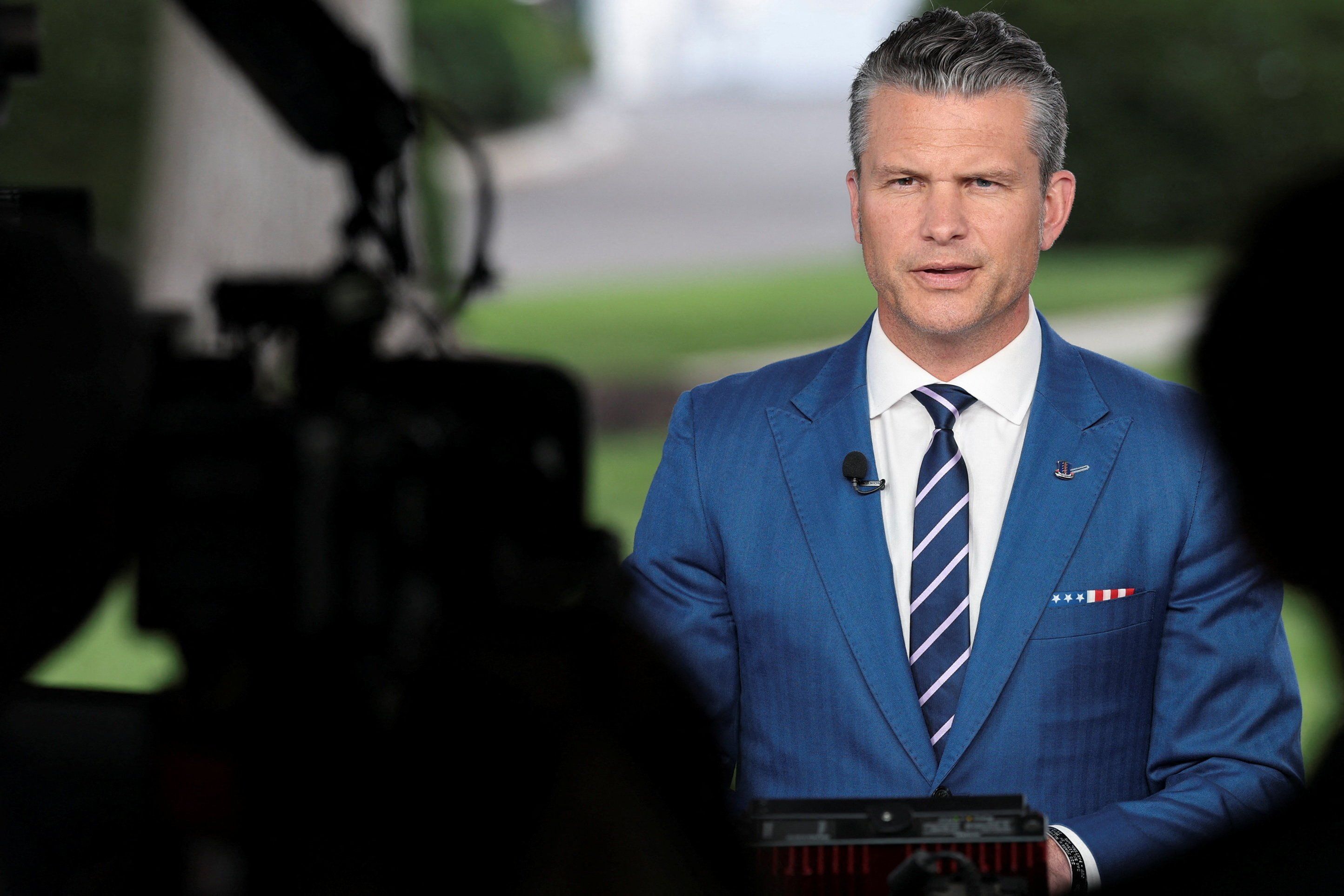 U.S. Defense Secretary Pete Hegseth gives a live television interview at the White House in Washington, D.C., U.S., August 7, 2025. REUTERS/Jonathan Ernst