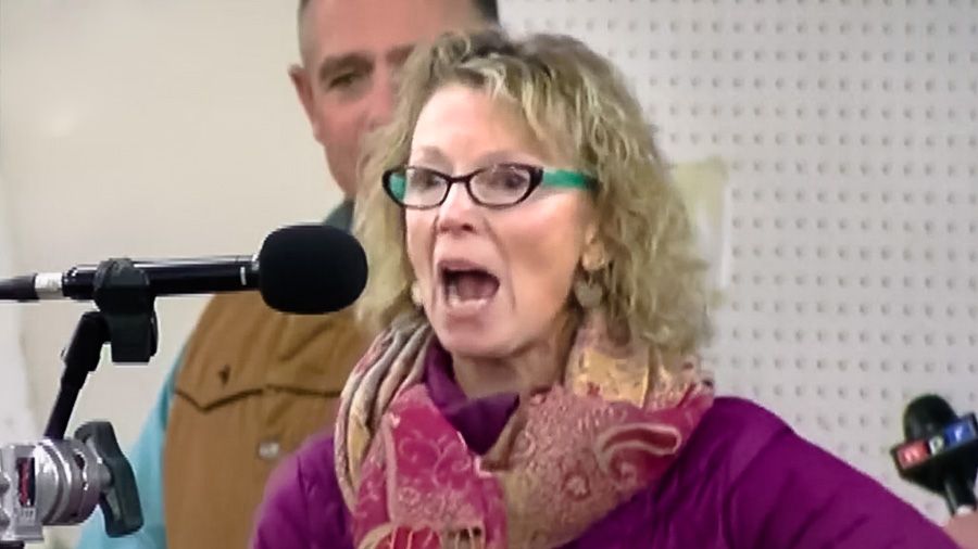 Rancher Georgia Marshall speaks at a Harney County meeting (screen grab)