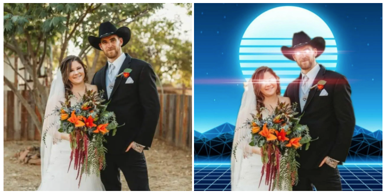 Chelsea Knight uses the same modified wedding photo on her Instagram account where she promotes the car caravans, while also sharing photos of family and friends. The wedding photo, minus the laser-eyes and moon-backdrop alterations, features in the profiles for Knight's personal Facebook and Twitter accounts.