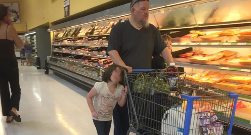 According to Facebook poster Erika Burch, the man was seen while she and her husband were grocery shopping. Burch's husband pointed out the incident and she walked by to snap 7 photos of the incident, including the business card of the police and a notation of the case number.