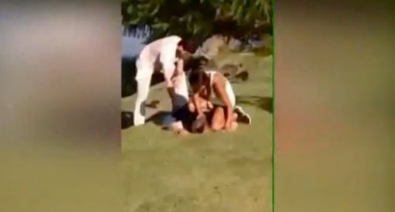 Couple perfirming exorcism in Texas park - screencapture from cellphone video