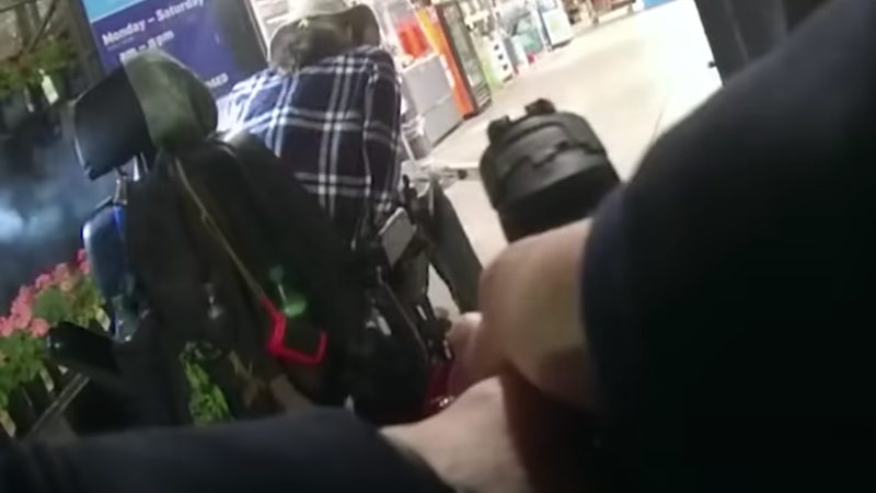 When he failed to stop and continued to enter a Lowe's store, one of the officers opened fire on him, causing him to slump over and fall face-first out of his wheelchair.