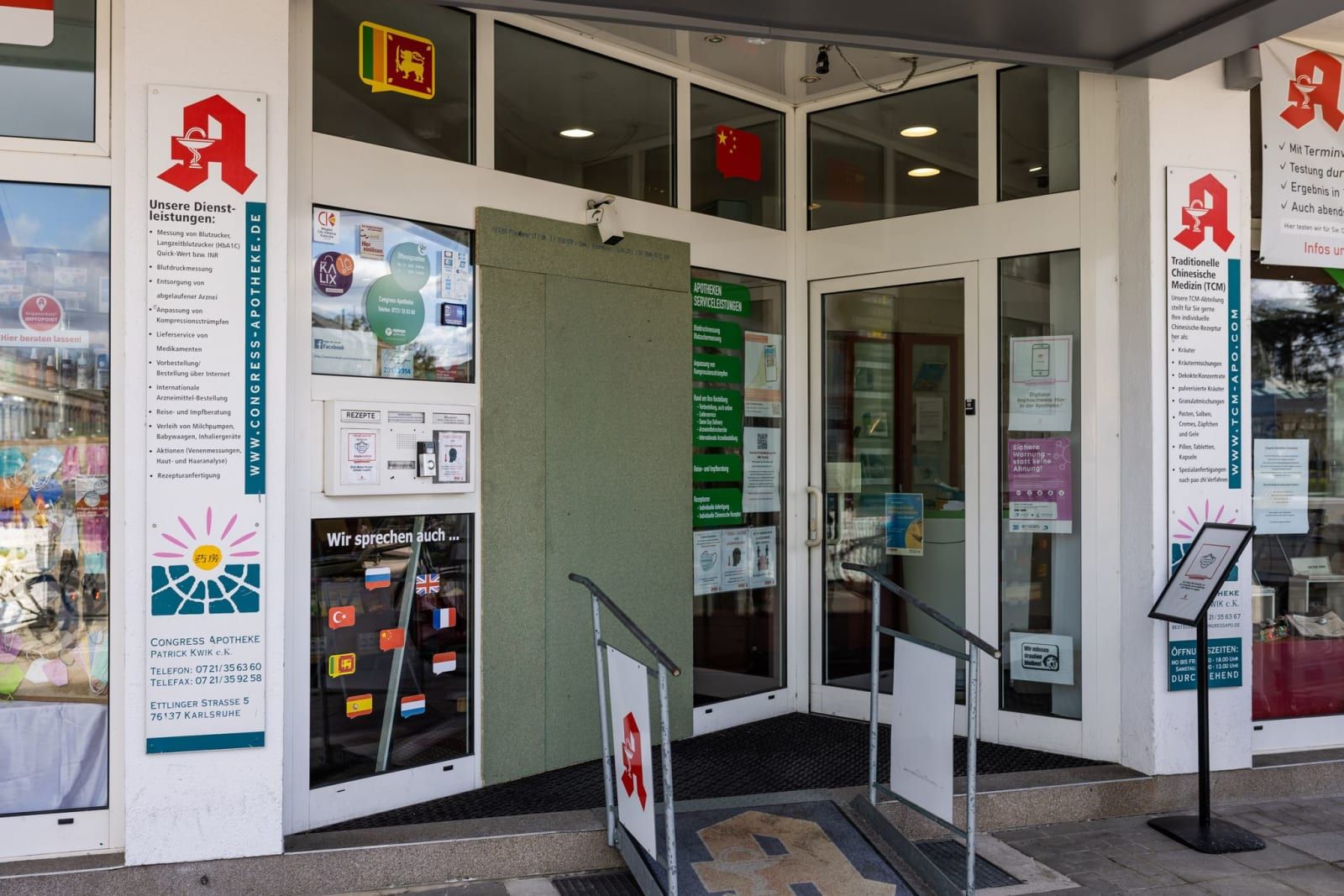 A view of a locked pharmacy after an armed 20-year-old man held 11 people hostage inside a drugstore for five hours on Friday in Germany's southern city of Karlsruhe before being apprehended. Philipp von Ditfurth/dpa