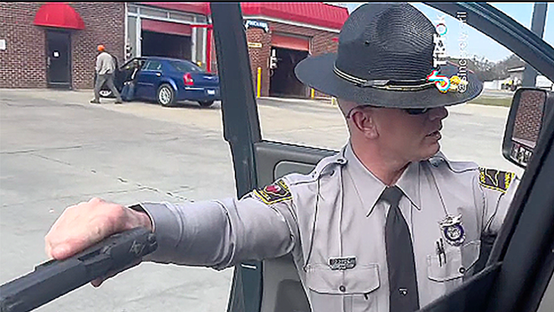 At that point, she said that she stepped out of the car to call her stepdad and that's when he pulled his weapon on her and her younger sister. The officer in the video pulls his gun out and held it sideways at the teen who was on her phone calling for help. He then pointed the gun at her mother, who he was trying to detain.