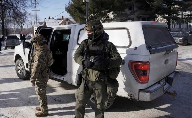 Federal immigration agents stand next to a vehicle as they conduct immigration enforcement tasks in south Minneapolis, Minnesota, U.S., January 23, 2026. REUTERS/Seth Herald