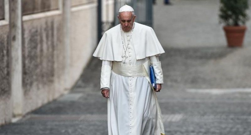Pope Francis arrives for the second morning session of the Synod of bishops on the Family at the Vatican on October 6, 2015 (AFP Photo/Andreas Solaro)