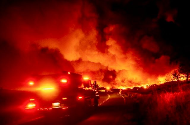 Gusts of 80 miles per hour (130 kph) were fueling the Kincade blaze -- which threatens tens of thousands of structures -- causing it to burn with greater intensity in remote steep terrain north of San Francisco, the National Weather Service said.