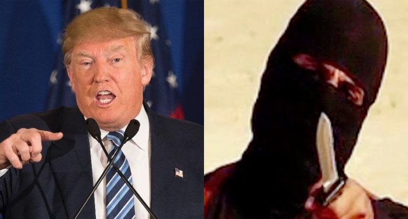Republican presidential candidate Donald Trump (L) and the Islamic State terrorist known as Jihadi John (R)
