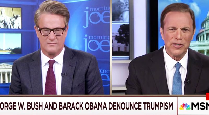 Host Joe Scarborough suggested that the two ex-presidents -- along with Sen. John McCain (R-AZ) earlier in the week -- have no choice but to go after the "heart of Trumpism" that promotes bigotry.