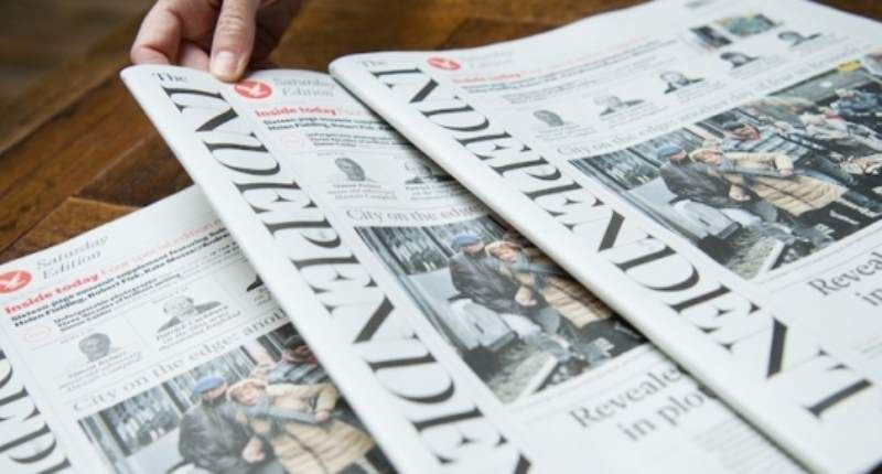 A woman poses with the final print edition of the Independent newspaper in London (AFP)