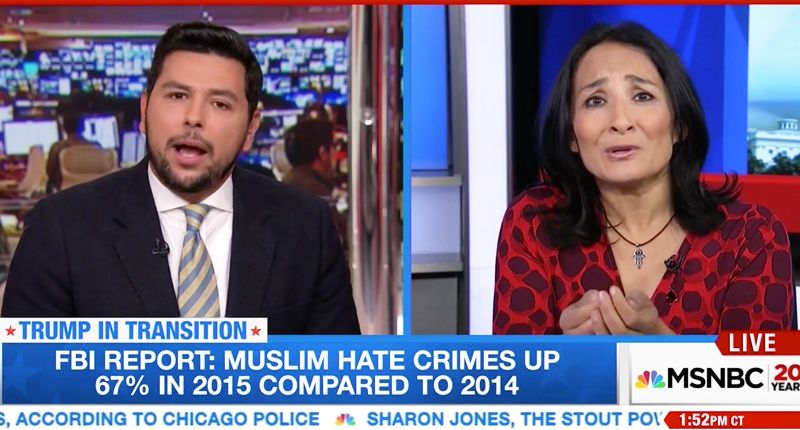 In a confounding interview with MSNBC’s Ayman Mohyeldin, a Muslim writer who voted for Trump — but who identifies herself as a “liberal” — refused to attribute recent attacks on Muslims to Trump’s victory on Nov. 8. Instead, she blamed Muslim organizations, Hillary Clinton and the past eight years under President Barack Obama.