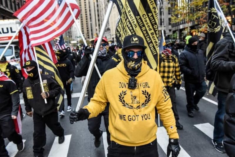 Members of the Proud Boys march in Manhattan against vaccine mandates in New York City (AFP)
