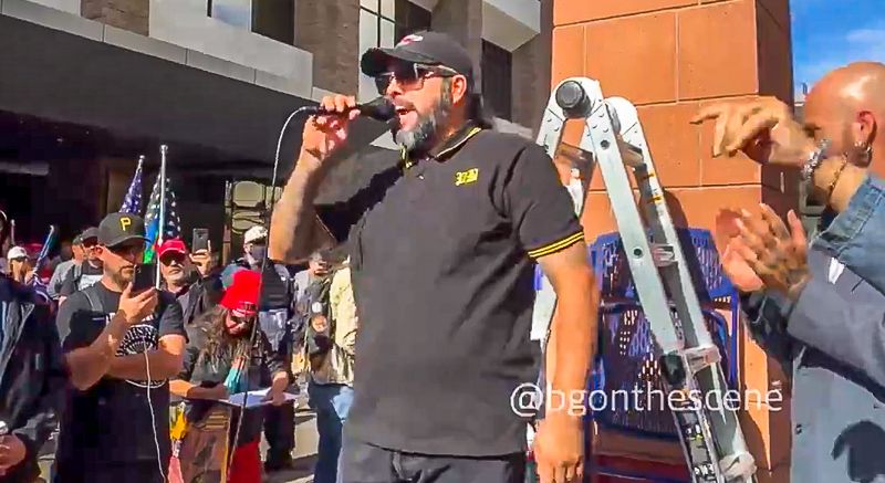 Member of the Proud Boys speaks in Phoenix, Arizona (Twitter/screen grab)