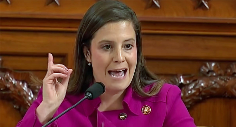 The ex-Republican adds, "But when Trump won, Stefanik adapted. She defended him during both impeachments, voted to overturn the election, and last week she went full batshit, making an appearance on disgraced bigot Sloppy Steve Bannon's podcast to praise the preposterous Arizona audit that's looking into whether the ballots were tainted with bamboo shards from China. Switching from Cheney to Stefanik is pure nihilism. It's punishing one person for speaking the truth and advancing another for their shameless in spreading a lie."
