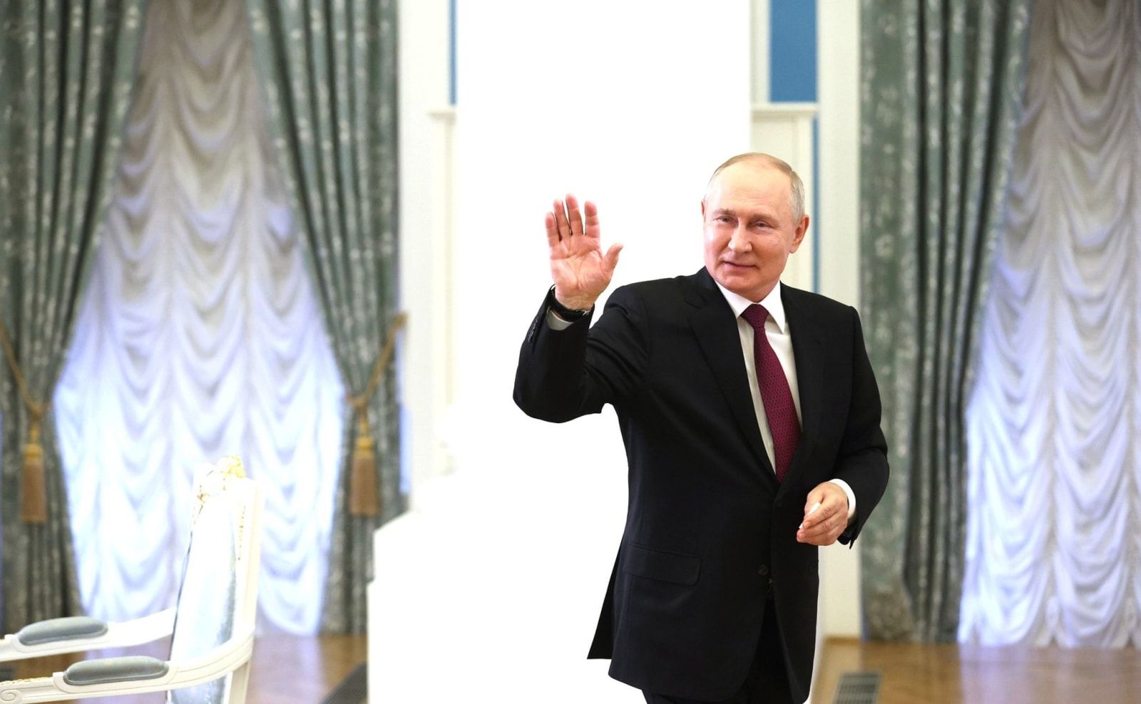 Russian President Vladimir Putin leaves at the end of the interview with China Media Corporation. Sergey Bobylev/Kremlin/dpa