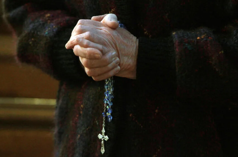 In this file photo, a churchgoer holds a cross and rosary beads on March 20, 2010 in Armagh, Northern Ireland. © Peter Muhly, AFP