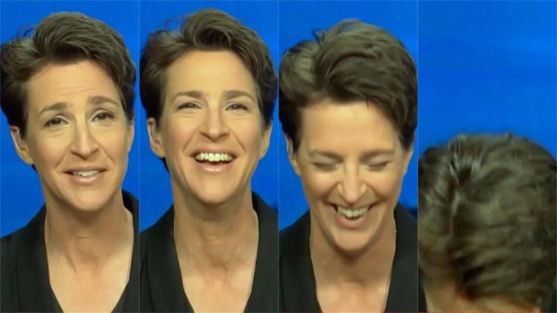 MSNBC anchor Rachel Maddow erupted in laughter while reporting on Donald Trump's impeachment trial on Friday evening.