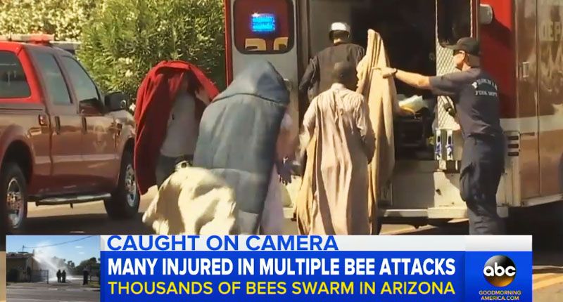 According to the Fox News Insider blog, the Muslim Community Mosque in Phoenix was overrun by bees stinging over 20 worshipers gathered in prayer and sending one to the hospital.