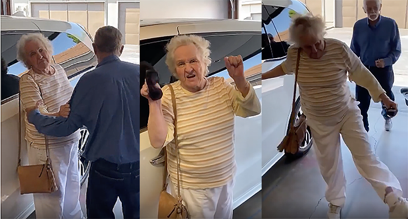 Angry elderly woman rails about sidewalk chalk (Photos: Screen captures)