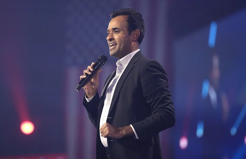 The tech entrepreneur, the AP reported, “has crept up in recent polls, leading to his position next to [Florida Governor Ron] DeSantis at center stage. And he quickly showed why when he showcased his ready-for-video, on-message approach — talking about how his poor parents moved to the US and gave him the chance to found billion-dollar companies.”